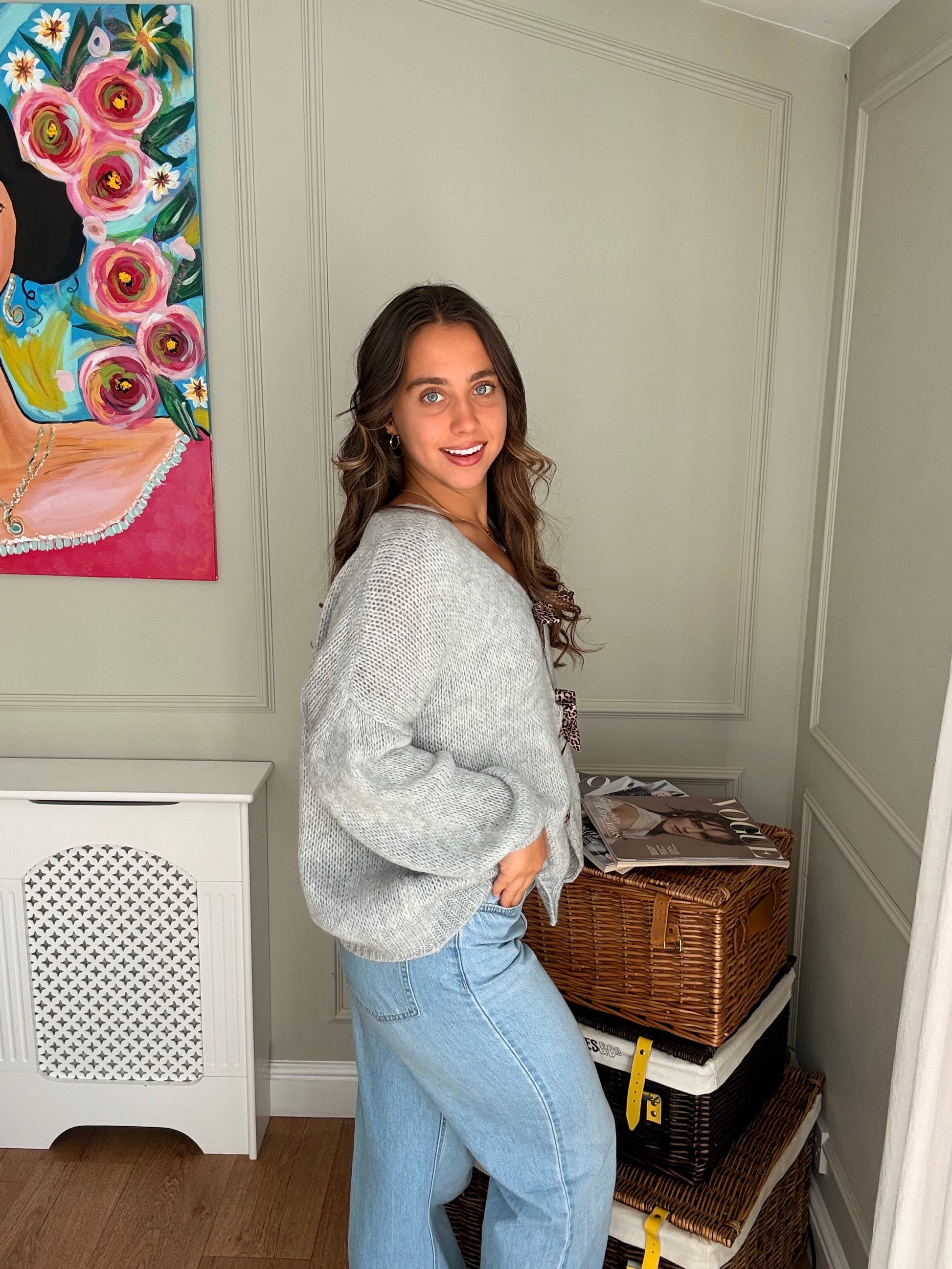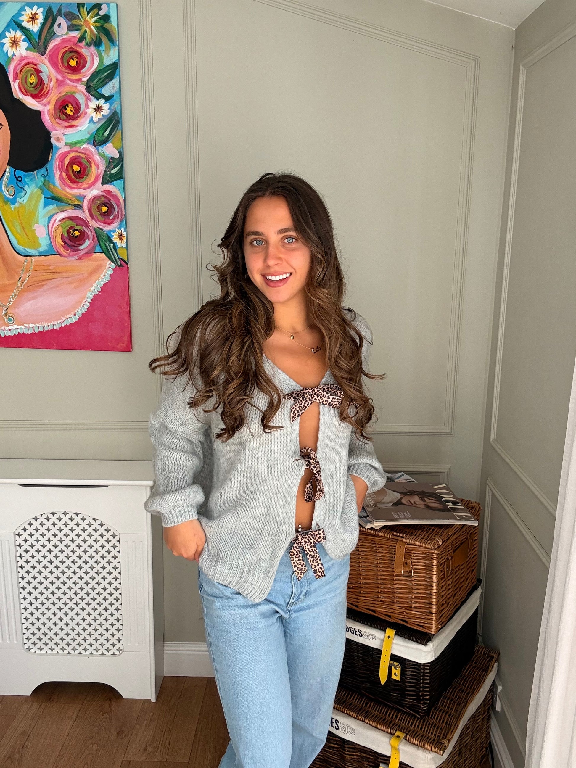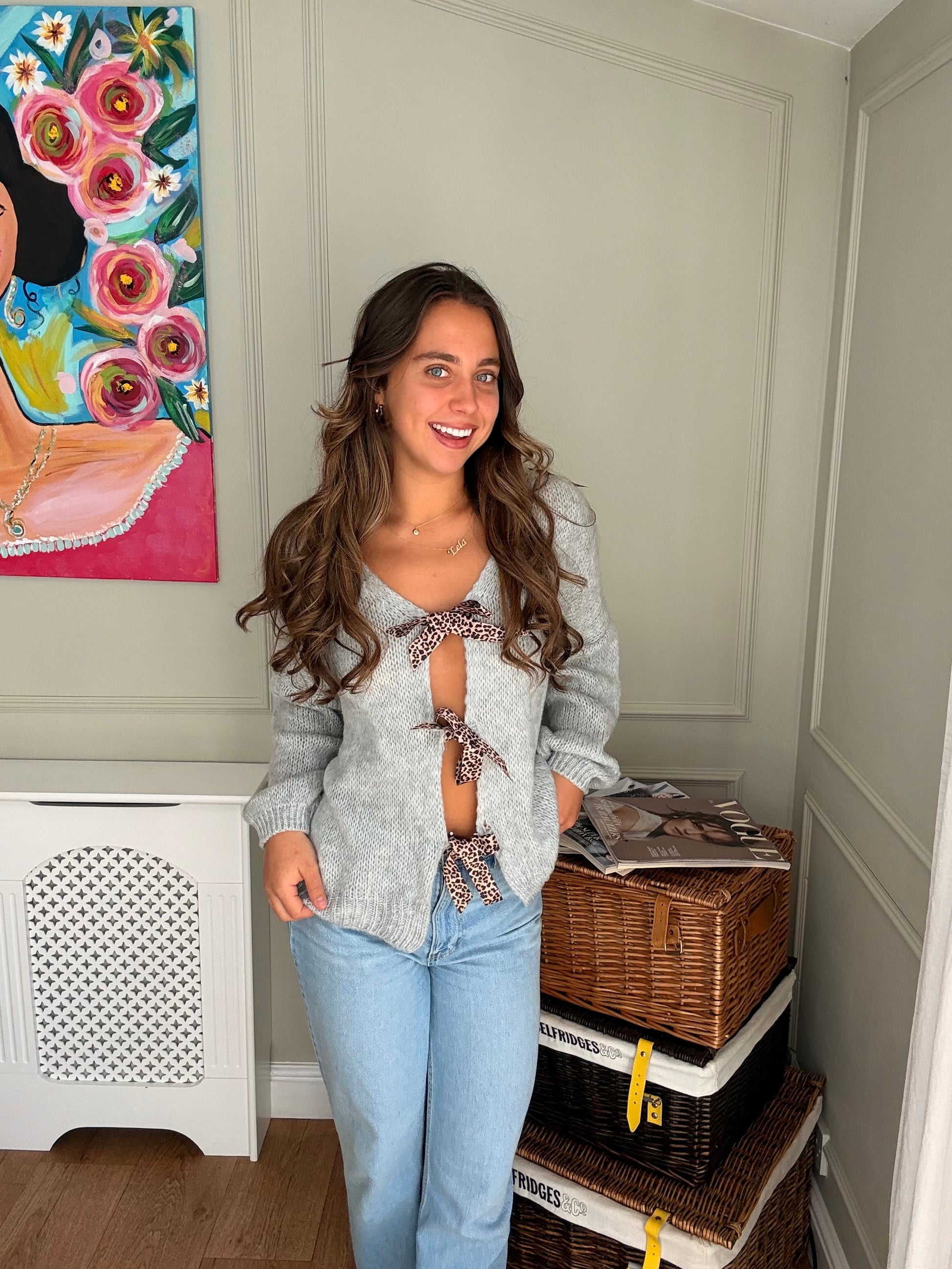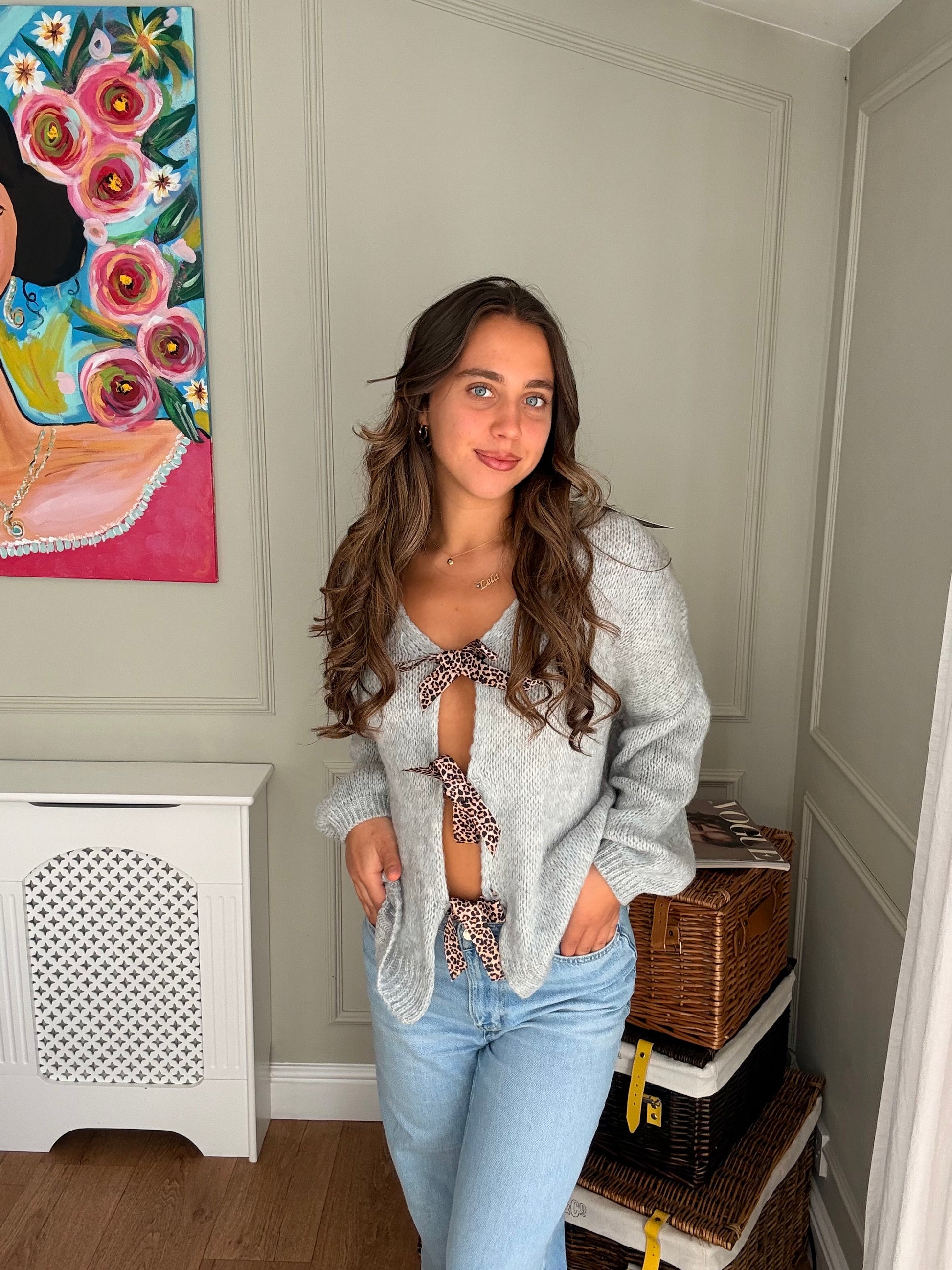 Leopard Print Tie-Up Knitted Jumper