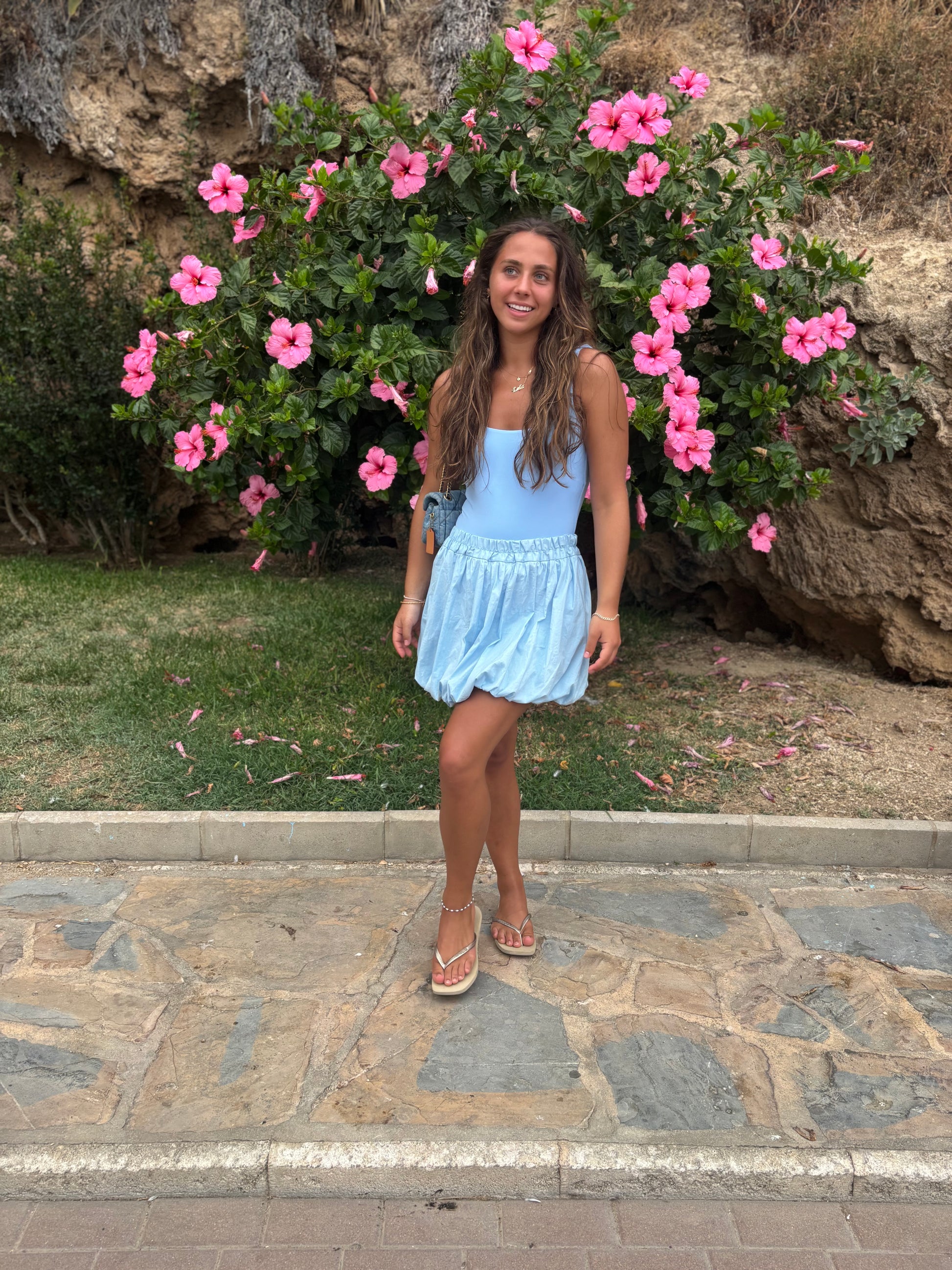 Step into style with our adorable baby blue Balloon Mini Skirt! This trendy piece effortlessly transitions from daytime fun to evening elegance. Featuring an elastic waistband and a playful ruched balloon hem, it strikes the perfect balance between edgy and sweet. Made in Italy from a soft and stretchy blend of 97% Cotton and 3% Elastane, this mini skirt is simply a must-have for any girly wardrobe!