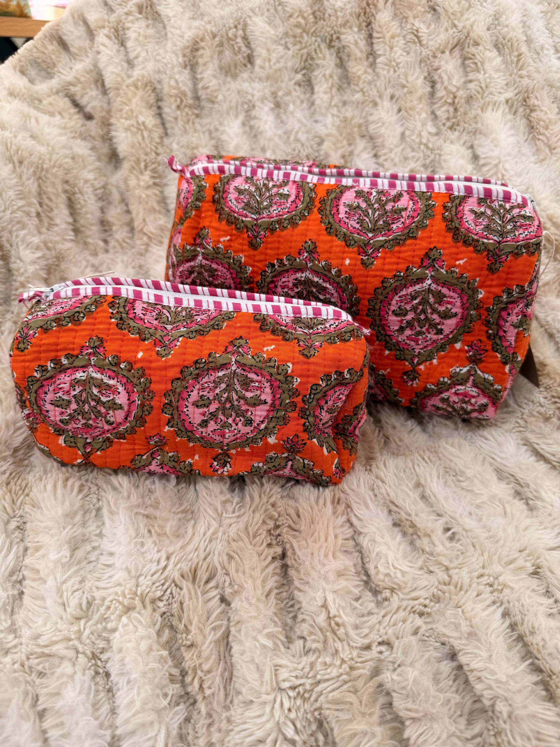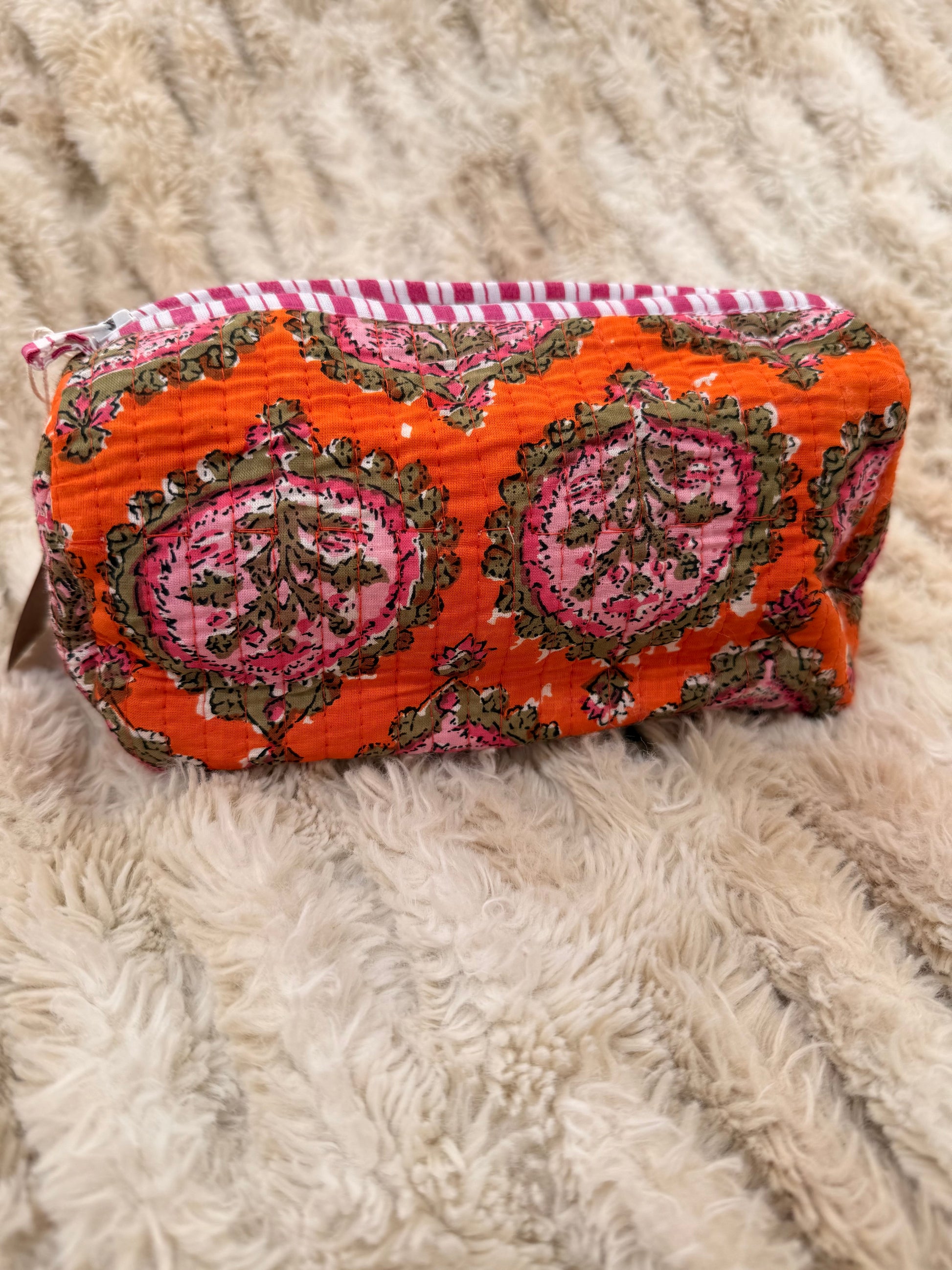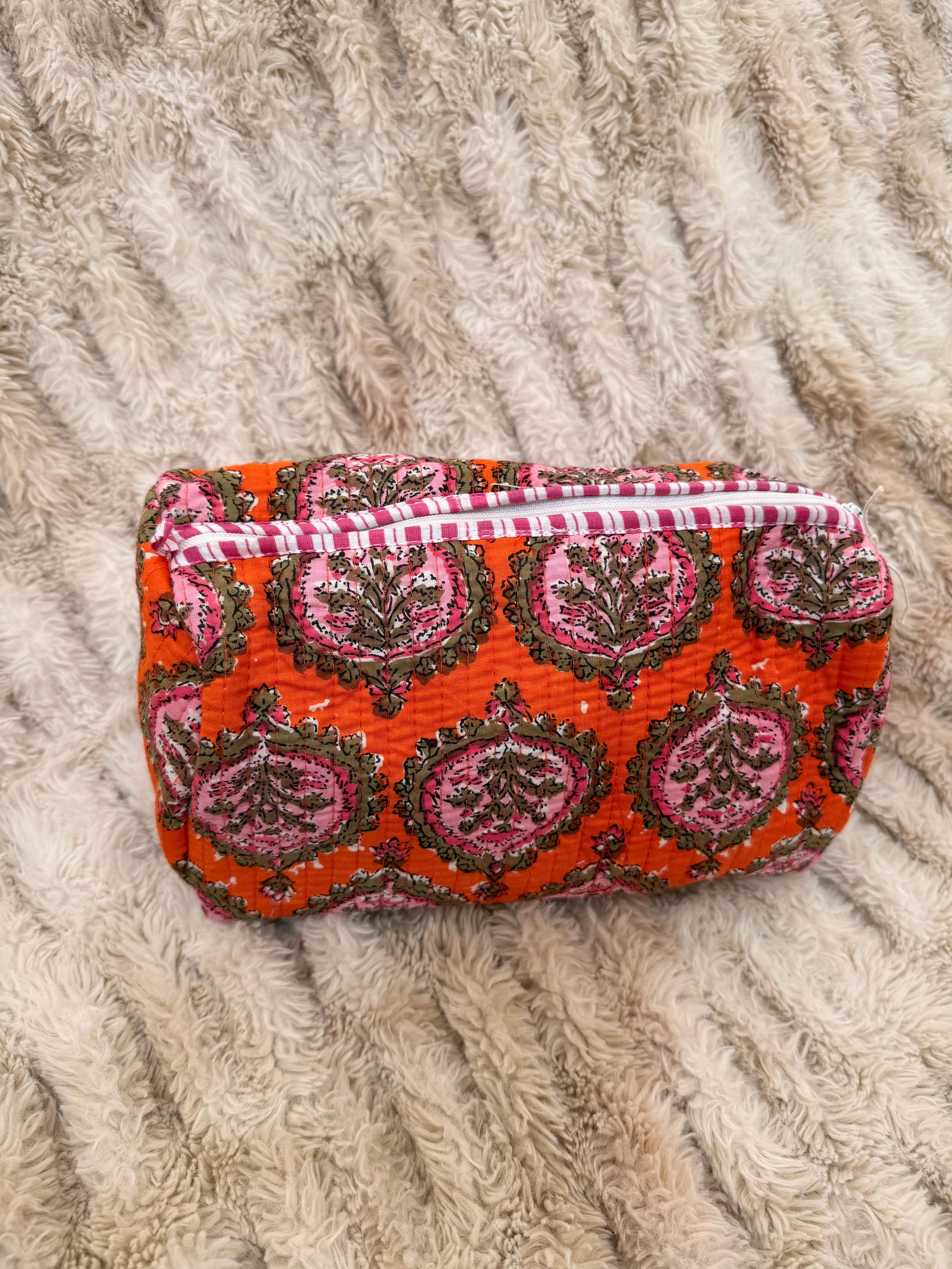 Quilted Cotton Wash Bag - Orange