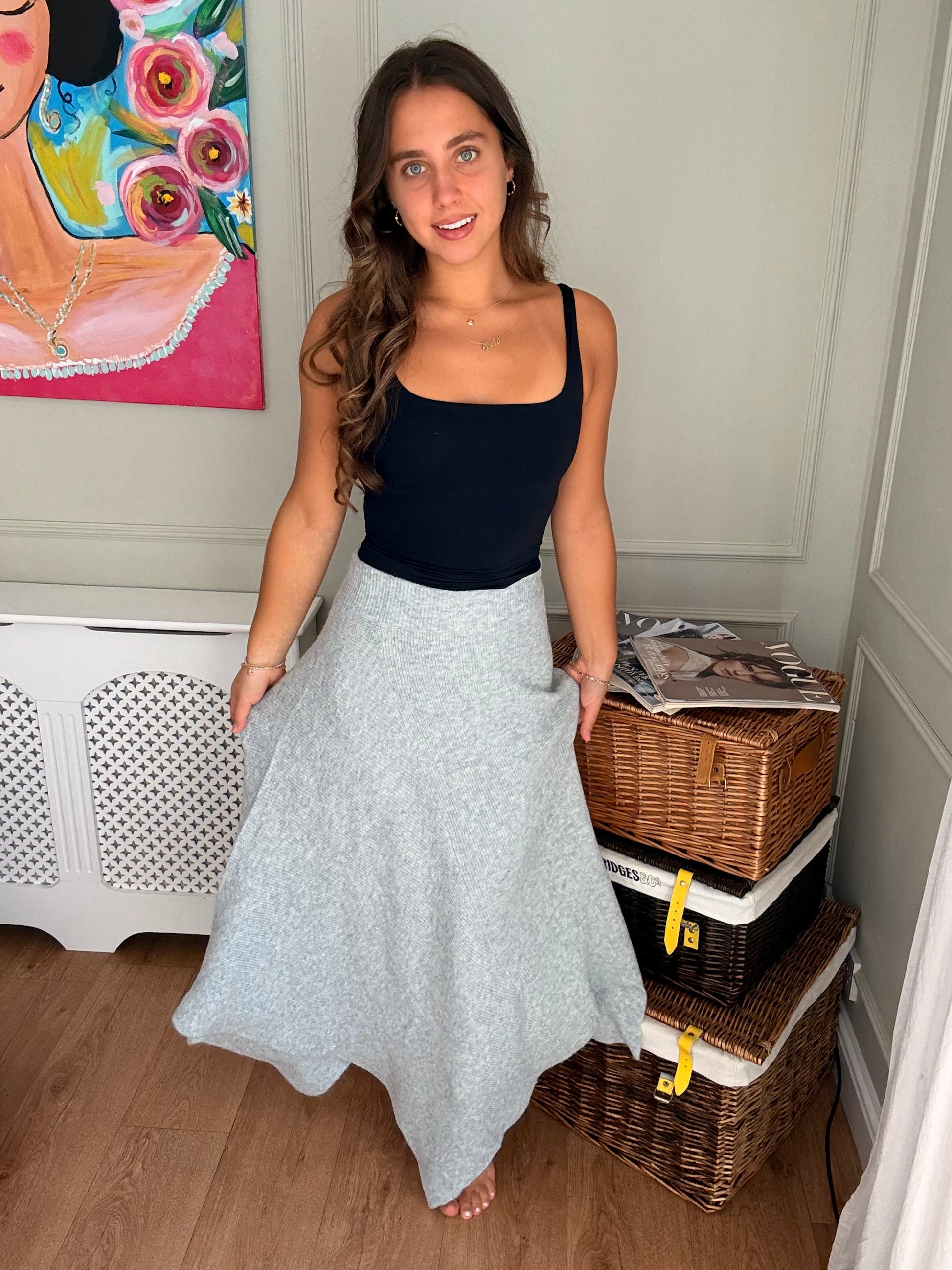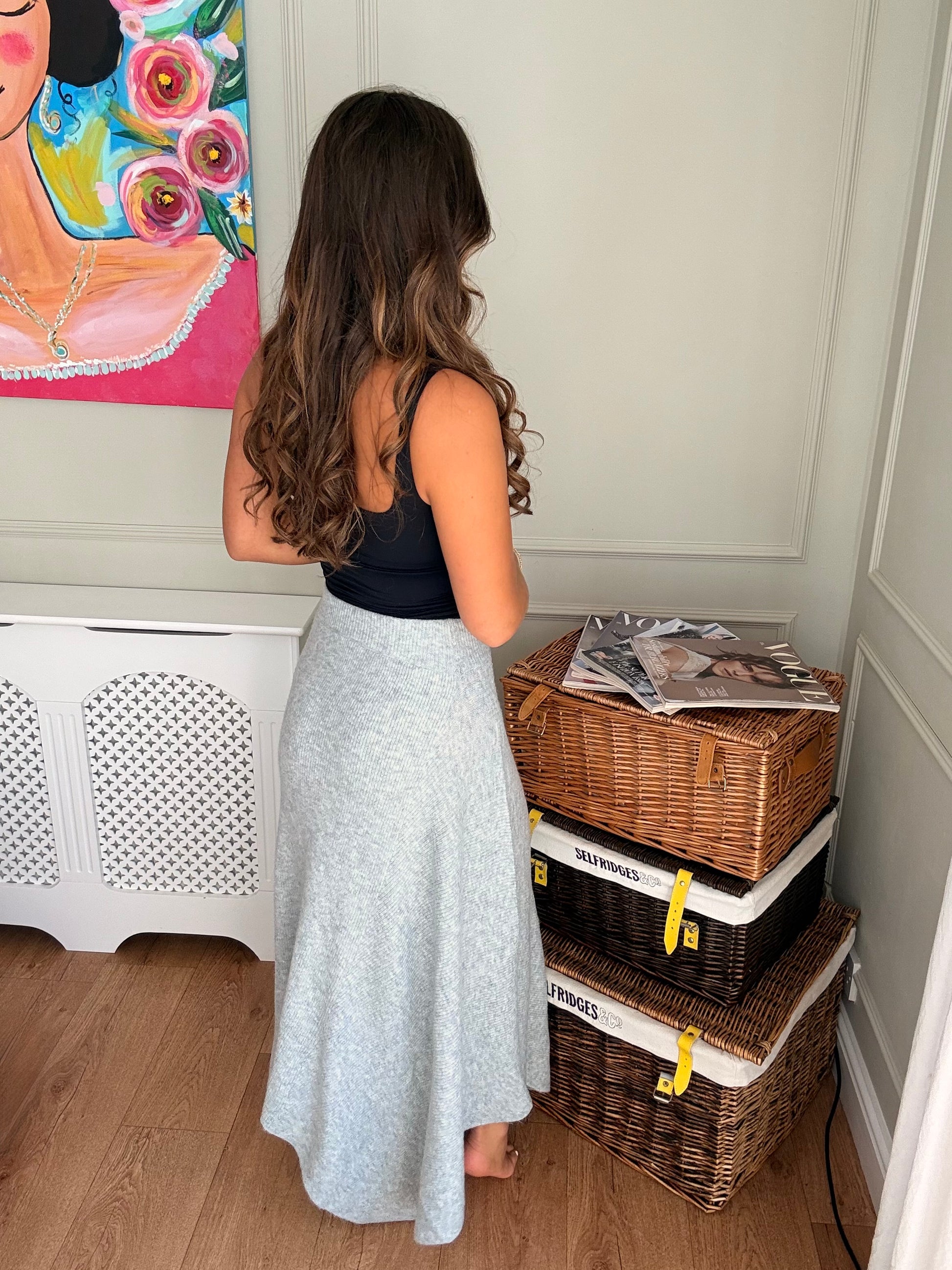 This knitted ribbed asymmetric skirt is effortlessly elegant and perfect for elevating your everyday style. Pair it with the matching roll neck jumper for a chic co-ord look, or mix and match with your other wardrobe favourites. It is one size and made from a super soft, high-quality knit, it feels as good as it looks!
