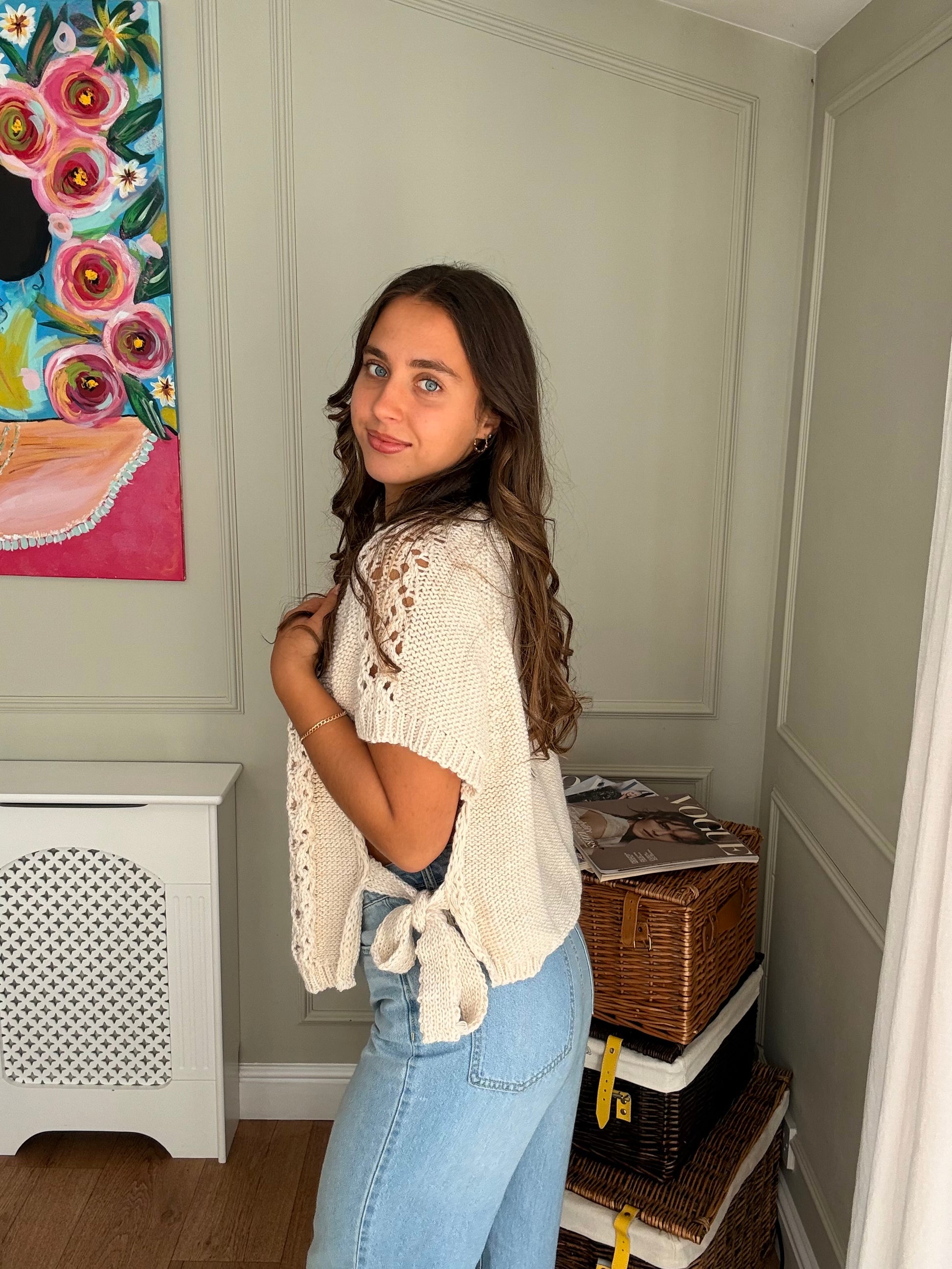 This gorgeous short sleeve side tie-up knitted jumper is the perfect blend of comfort and chic. With its one size, flattering fit and modern detailing, it’s an easy-to-style piece you’ll reach for again and again. Beautifully made in Italy from a soft, breathable knit.