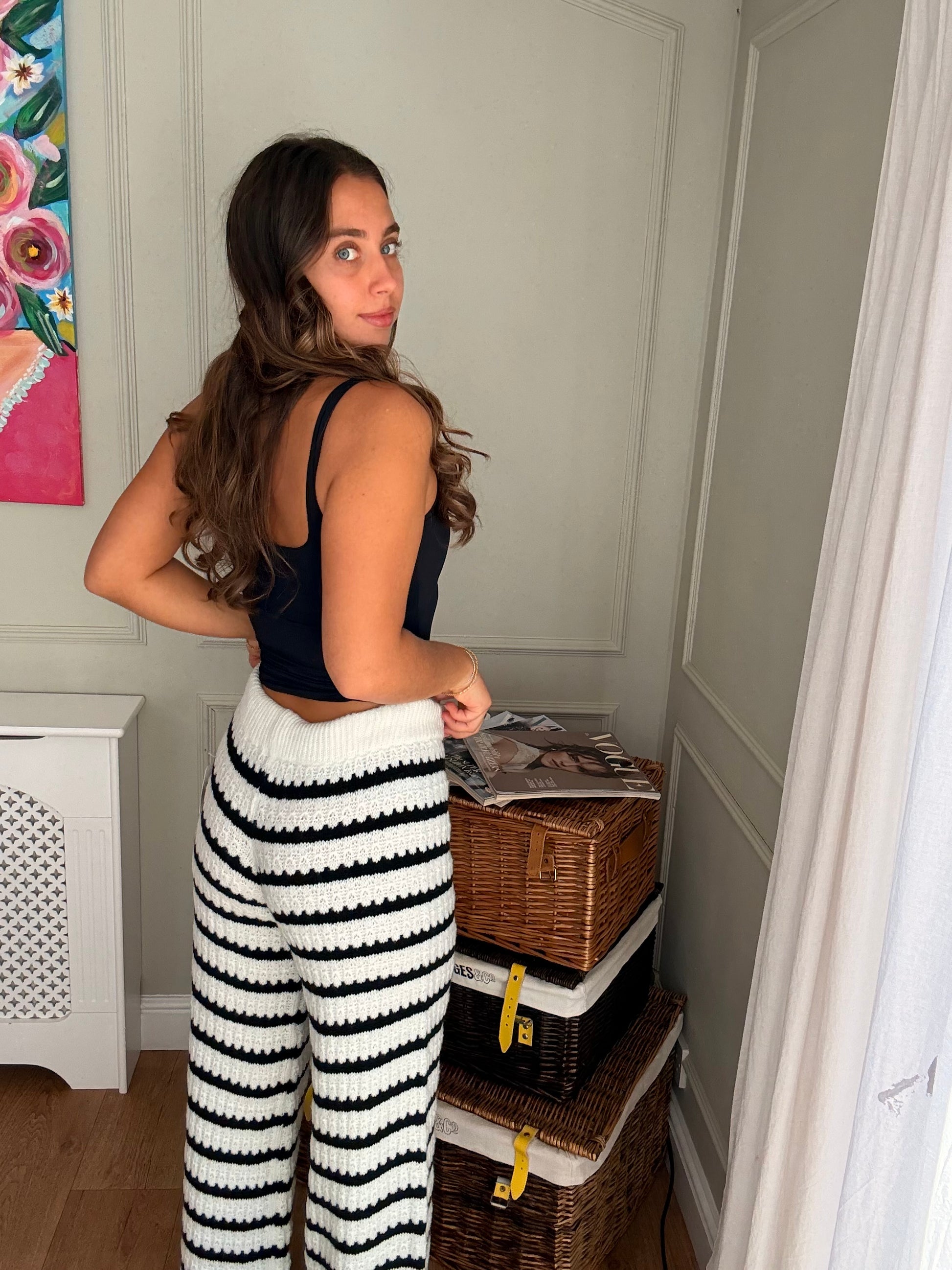 Experience effortless summer chic with our beautifully hand-crocheted knitted trousers, crafted with love in Italy. These stylish bottoms feature an elasticated drawstring waist, allowing for a relaxed and adjustable fit that’s perfect for lounging or outings. Designed to comfortably accommodate sizes UK 8 to UK 14, they are the ultimate blend of comfort and cool for your warm-weather wardrobe.